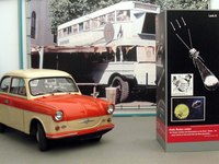 Gezeigt wird nicht nur Kaminskis originalgetreuer «Sputnik-Keller» und ein 1969 von der ARD für die TV-Übertragung genutztes Modell des «Mondmobils» . Es wird beispielsweise auch das erste Ankoppelmanöver zwischen den Apollo- und Sojusraumschiffen 1975 dokumentiert, und die Namensgebung eines berühmten Autos als Ausdruck der Sputnik-Begeisterung: Als 1958 Beschäftigte des Autowerks Zwickau über den Namen des neuen Modells abstimmen durften, wählten sie die Übersetzung des russischen Wortes Sputnik: Trabant.
